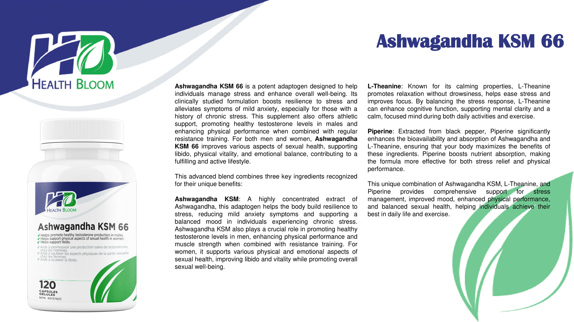 This unique combination of Ashwagandha KSM-66, L-Theanine, and Piperine provides comprehensive support for stress management, improved mood, enhanced physical performance, and balanced sexual health, helping individuals achieve their best in daily life and workouts.