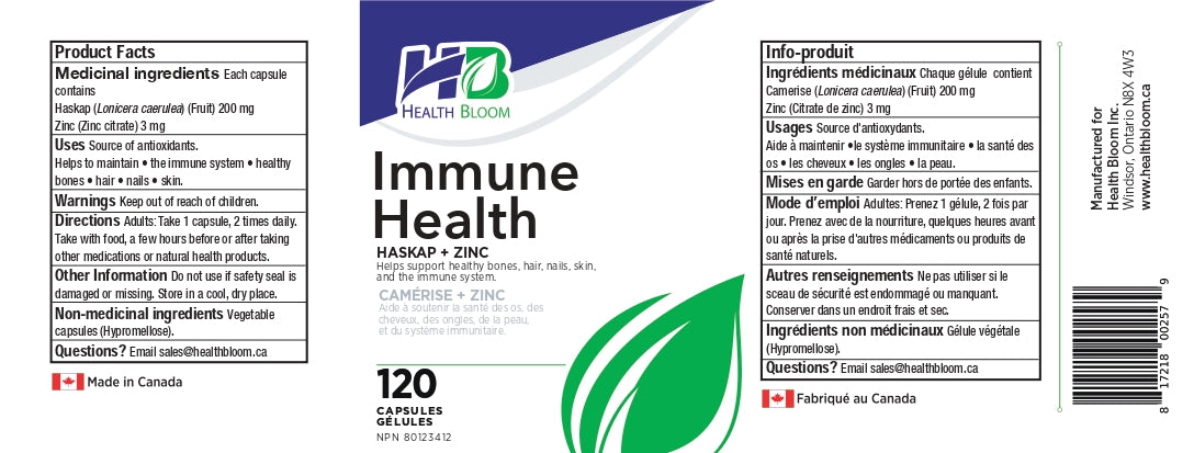 Haskap berries, known for their high antioxidant content, help protect your cells from oxidative stress and contribute to overall immune health. With the powerful combination of Haskap and Zinc Citrate, Immune Health offers a convenient, all-in-one solution for boosting immunity and enhancing the health of your bones, skin, hair, and nails.