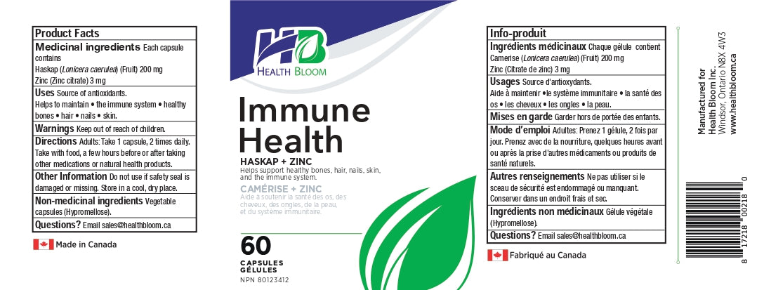 Haskap berries, known for their high antioxidant content, help protect your cells from oxidative stress and contribute to overall immune health. With the powerful combination of Haskap and Zinc Citrate, Immune Health offers a convenient, all-in-one solution for boosting immunity and enhancing the health of your bones, skin, hair, and nails.